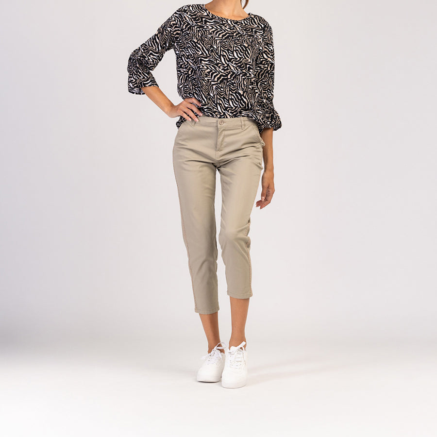 Acest tricou pentru femei cu mânecă 3/4 captivează cu un model bej sofisticat care se potrivește ușor cu orice stil. Fabricată din viscoză moale, oferă respirabilitate plăcută, confort și un aspect relaxat, dar rafinat.
