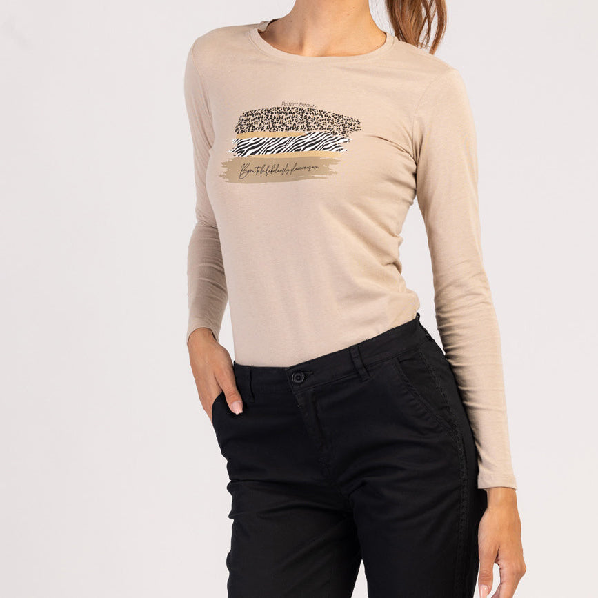 Un tricou cu mânecă lungă din bumbac care combină confortul și un aspect modern pentru purtare zilnică. Materialul moale și respirabil îmbrățișează confortabil pielea, în timp ce croiala clasică asigură o potrivire perfectă, fără restricții.