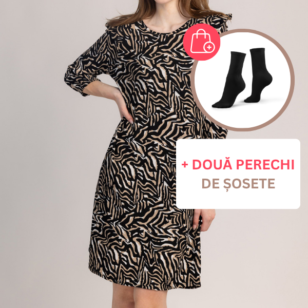 O rochie ușoară, concepută pentru momente de relaxare. Fabricat dintr-un amestec plăcut de poliester și fibre suplimentare care asigură o potrivire mai bună, respirabilitate și o atingere moale.