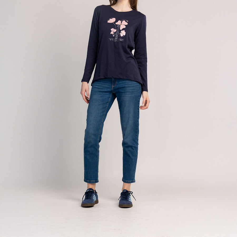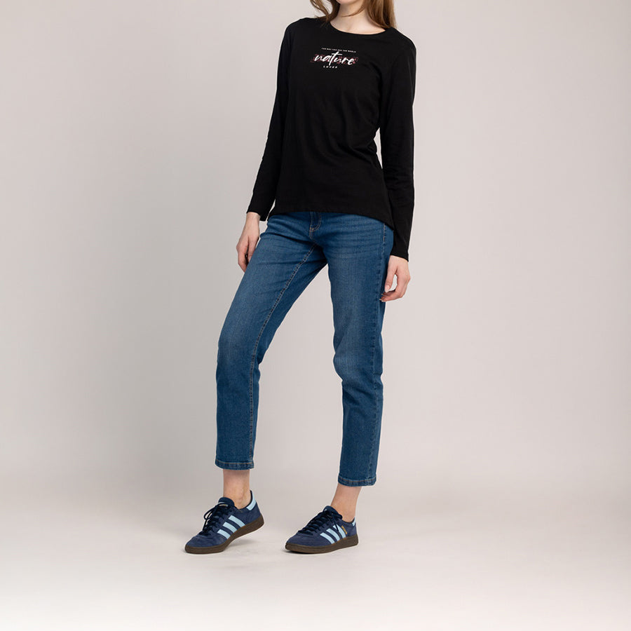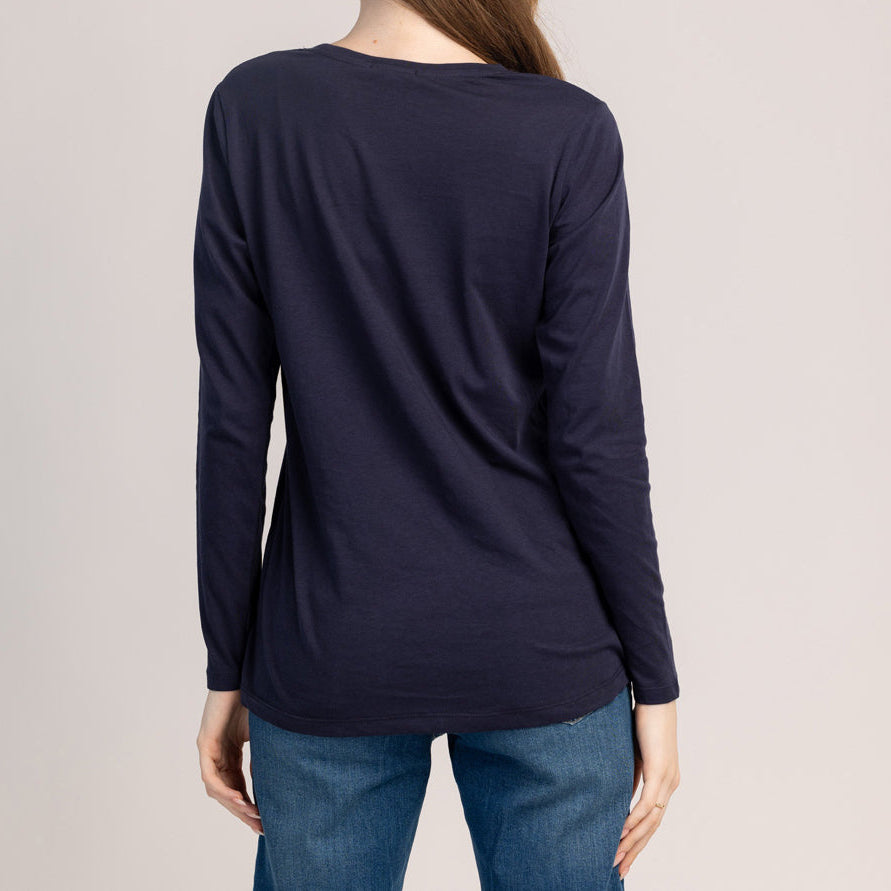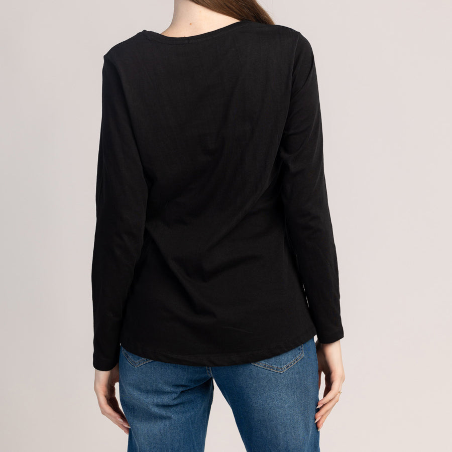 Un tricou cu mânecă lungă din bumbac care combină confortul și un aspect modern pentru purtare zilnică. Materialul moale și respirabil îmbrățișează confortabil pielea, în timp ce croiala clasică asigură o potrivire perfectă, fără restricții.