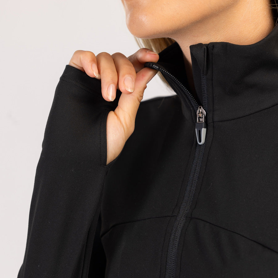 Această jachetă sport cu mânecă lungă pentru femei combină confortul, funcționalitatea și un aspect modern. Fabricată dintr-un material moale și elastic, care permite o libertate maximă de mișcare, este ideală pentru sport, plimbări sau pur și simplu pentru o purtare confortabilă de zi cu zi.